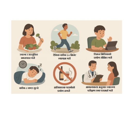 - स्वस्थ / सन्तुलित आहार सेवन गर्ने,
